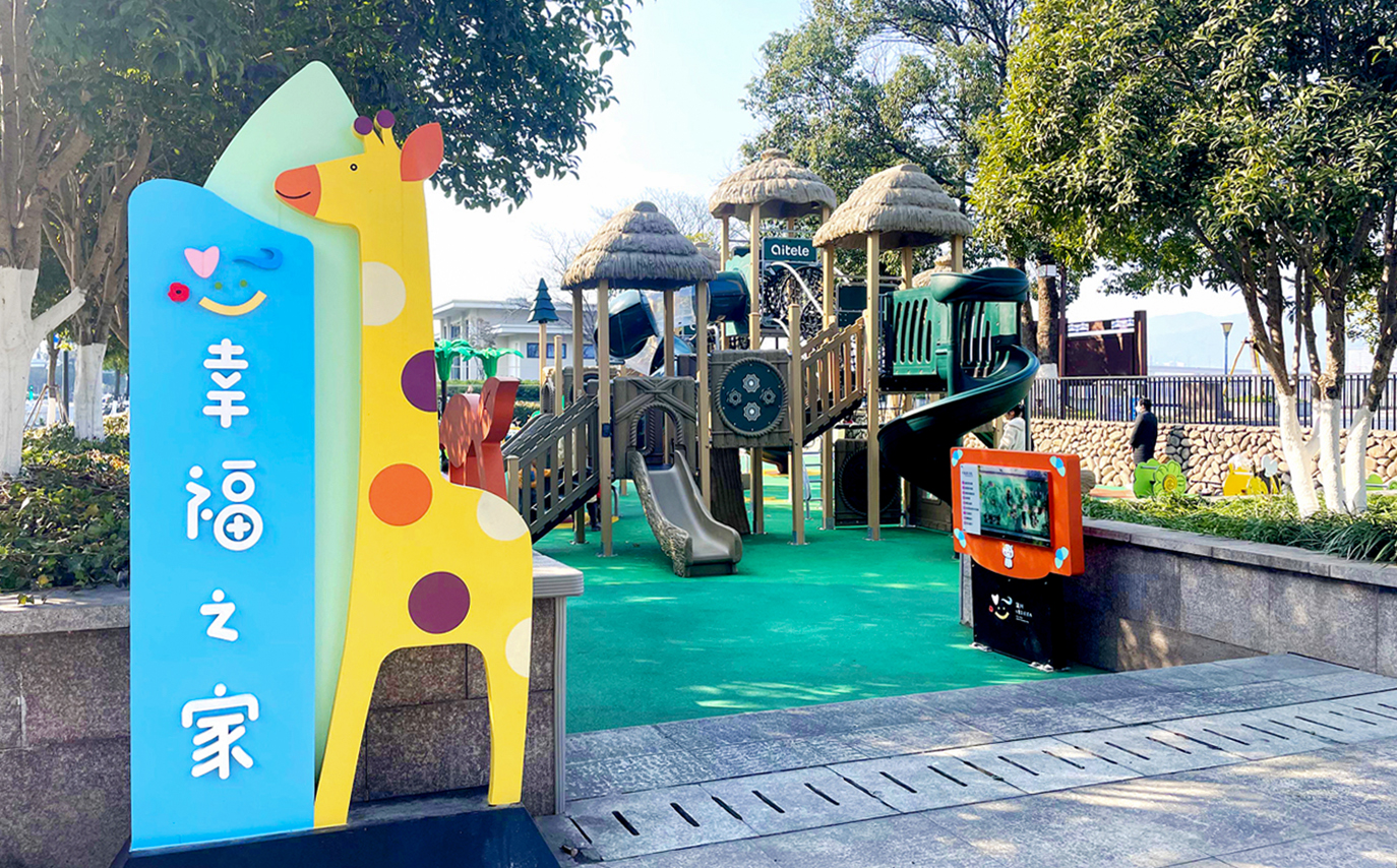 项目位于温州市区瓯江路江滨带状公园米房创意园对面,米房“幸福之家”儿童友好乐园设置了主题器械活动区和小童游乐区两大区块。倾听儿童声音,看见儿童需要,尊重儿童想法,儿童公园充满了温馨的生活气息,展现着最生动的幸福图景。从而也让城市更有温度、更加包容、更具活力。