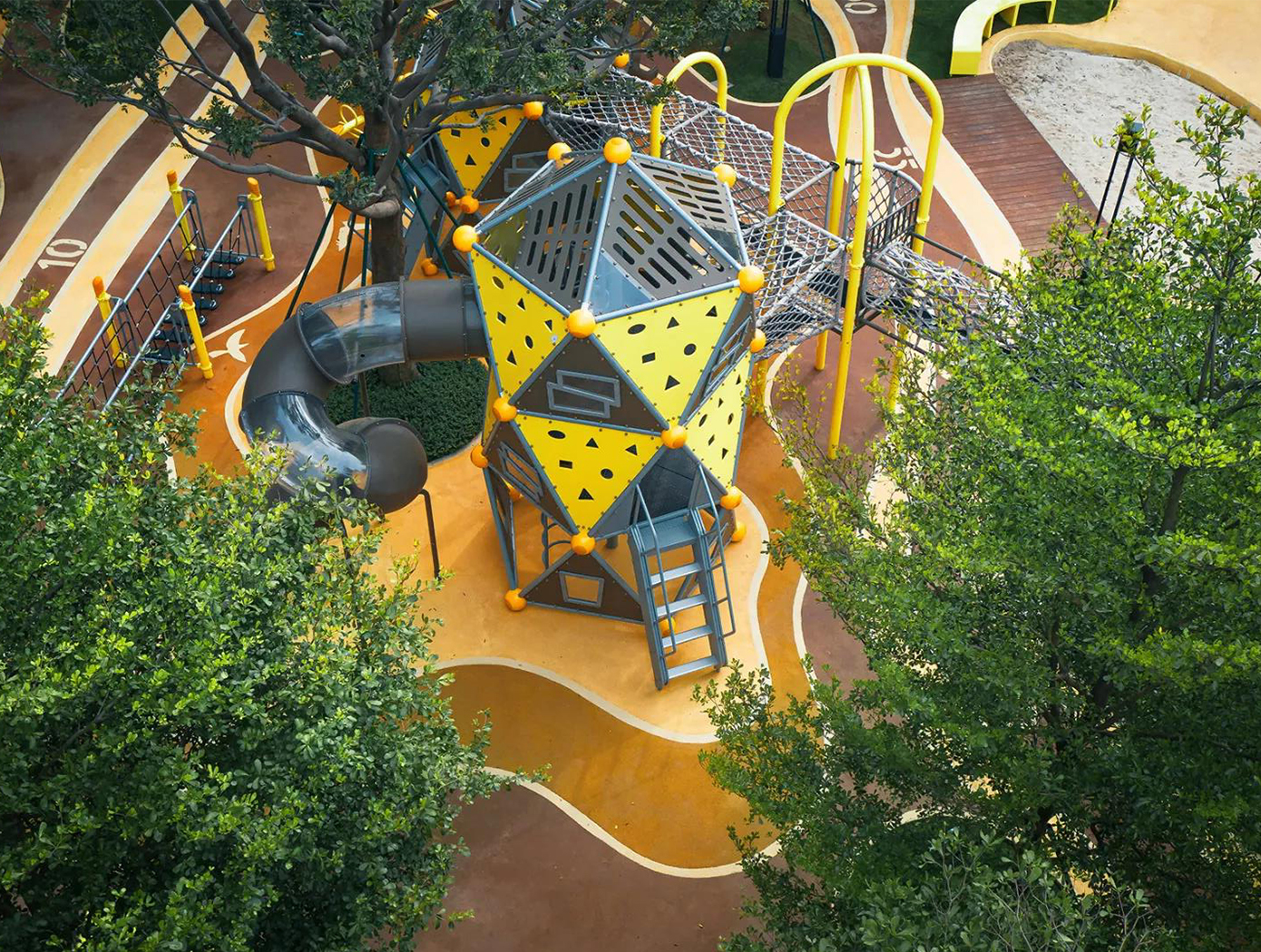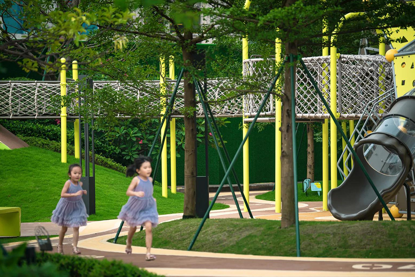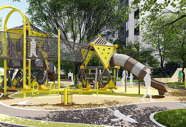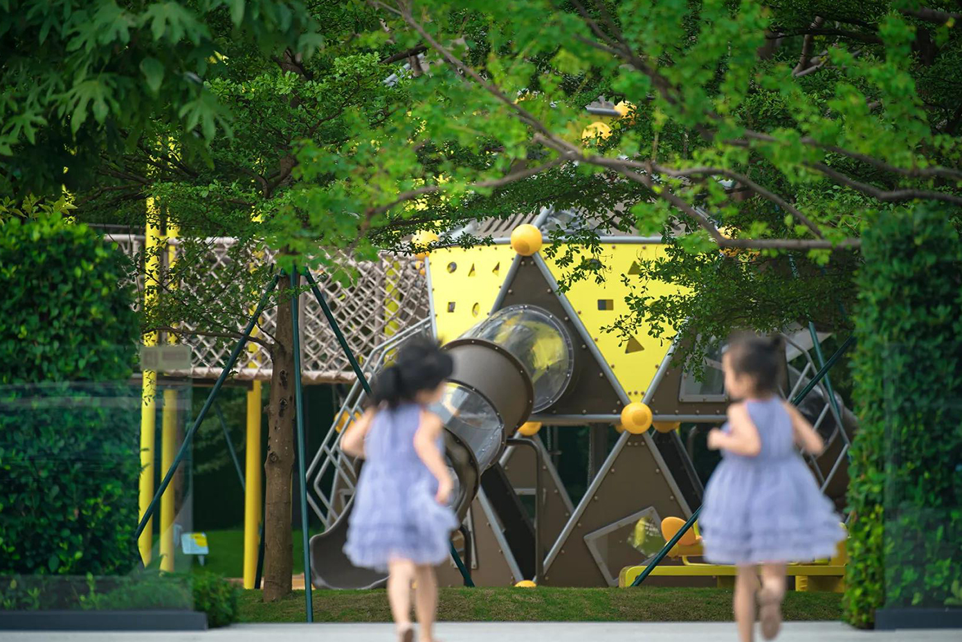 洞察城市儿童成长需求, 创造神秘树屋乐园,将益智活动与冒险活动融入场地之中, 打造多元的亲子互动空间。